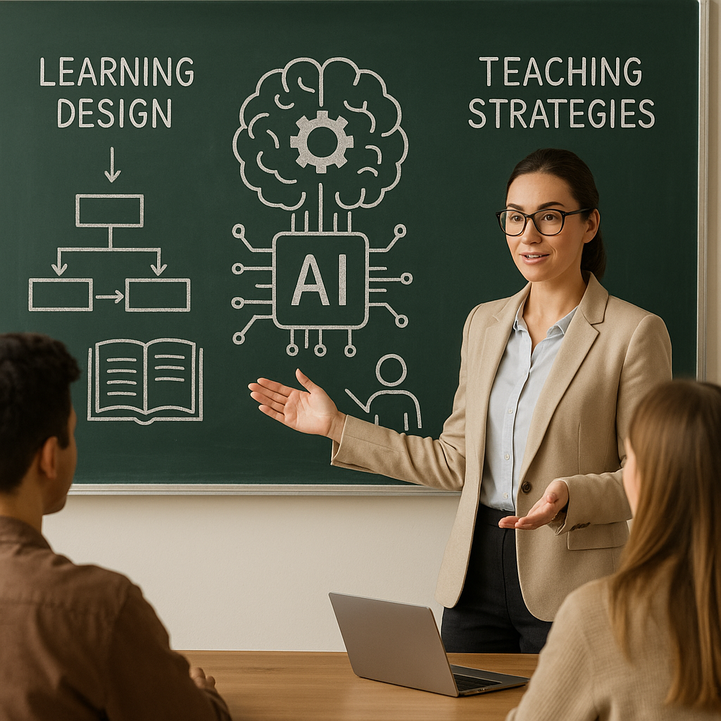 การออกแบบการเรียนรู้สู่กลยุทธ์การสอนยุคปัญญาประดิษฐ์ จึงเป็นการปรับโครงสร้างการสอนใหม่ทั้งหมด จากการสอนแบบบรรยายเดิม ๆ ไปสู่การสร้างสถานการณ์ให้ผู้เรียนได้เรียนรู้ผ่านการลงมือทำจริง โดยใช้ AI เป็นทั้งเครื่องมือสนับสนุนและแหล่งเรียนรู้ ทำให้ห้องเรียนกลายเป็นพื้นที่ปลอดภัยสำหรับการทดลอง ความผิดพลาด และการเติบโต